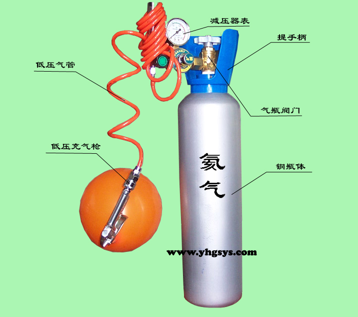 (一)50磅低压氦气瓶、毛重: 5公斤、手提便携式设计、方便安全、可以充122个直径为17厘米的气球(计算值)、该产品特别适应于婚庆、生日、喜宴、开业气球装饰。该气瓶已充装好氦气,无需减压器即可通过气瓶开关直接对气球进行充气、亦可连接充气枪更方便为气球充气